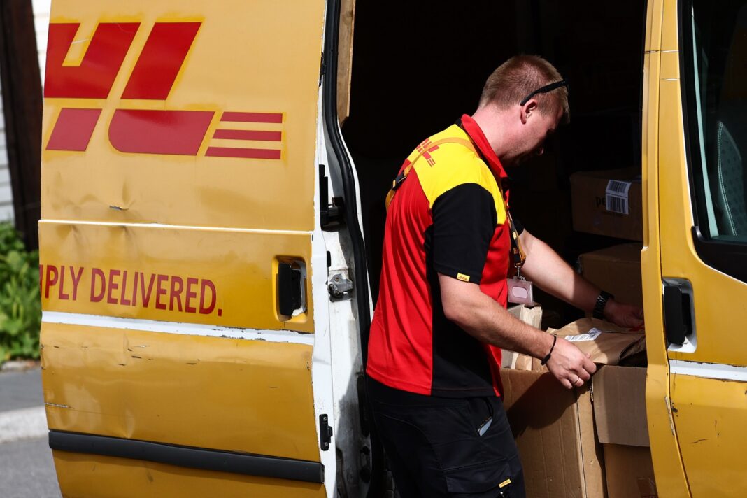 Curier al DHL pregătindu-se să predea colete clienților, FOTO: Jakub Porzycki-NurPhoto / Shutterstock Editorial / Profimedia