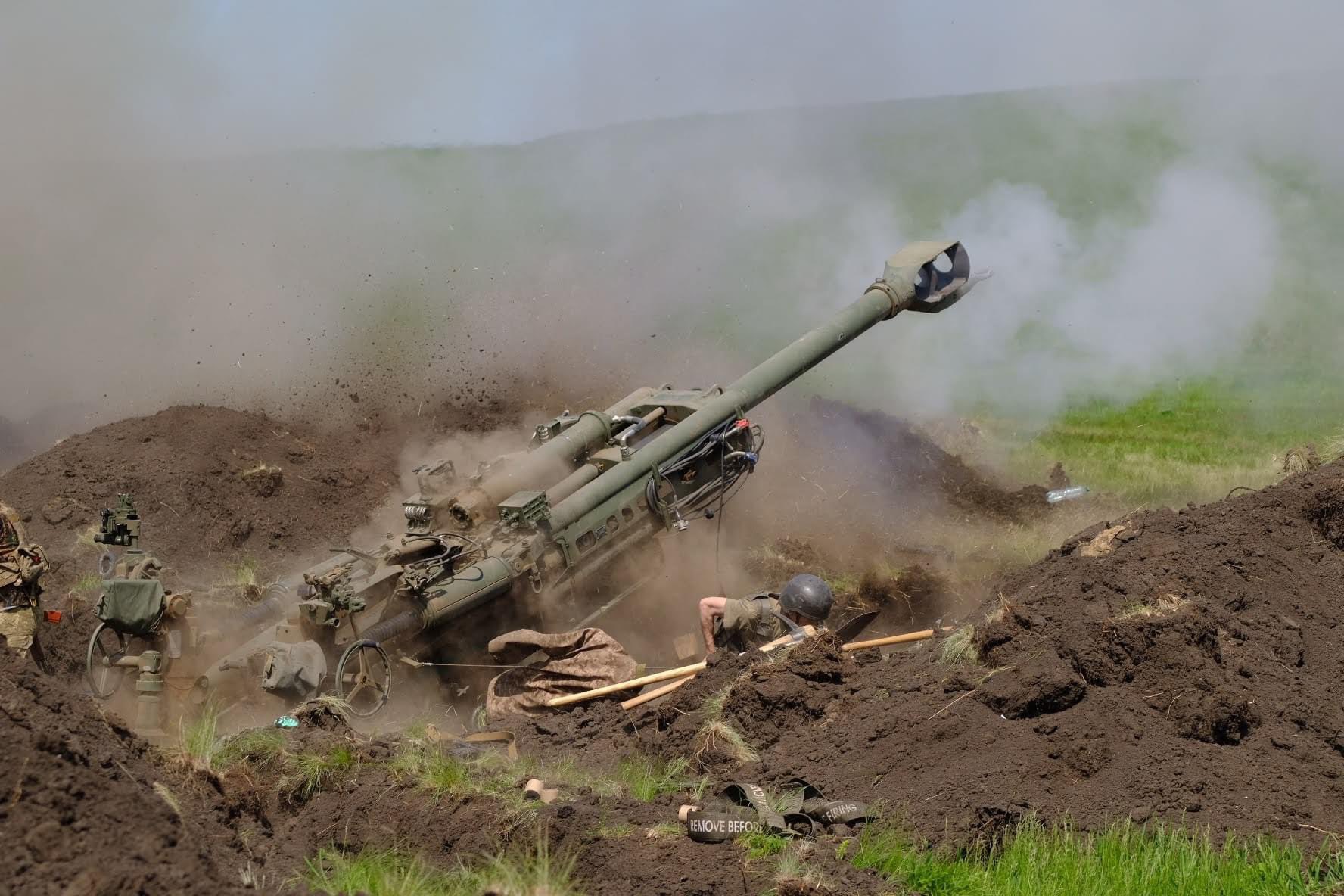 Soldați ucraineni trăgând cu un tun M777 primit de la americaniFoto: Twitter