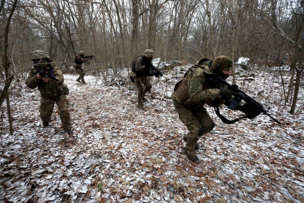 Soldați ucraineni la un exerciți tactic în zona Kievului. Foto: Oleksandr Klymenko / Sipa Press / Profimedia