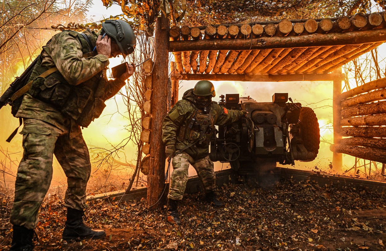 Militarii ruși din unitatea de artilerie a Districtului Militar Central trag cu un obuzier D-30 spre pozițiile ucrainene, în LuganskFoto: Stanislav Krasilnikov / Sputnik / Profimedia