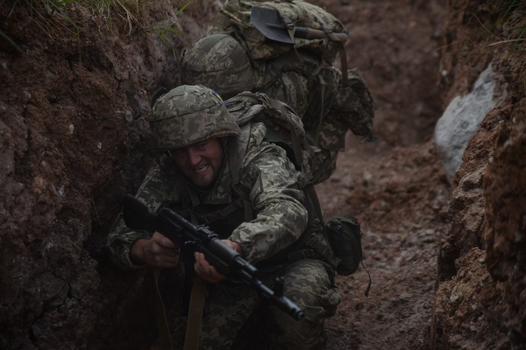 Soldați ucraineni la antrenamente de luptă în tranșee, regiunea DonețkFoto: Madeleine Kelly / Zuma Press / Profimedia