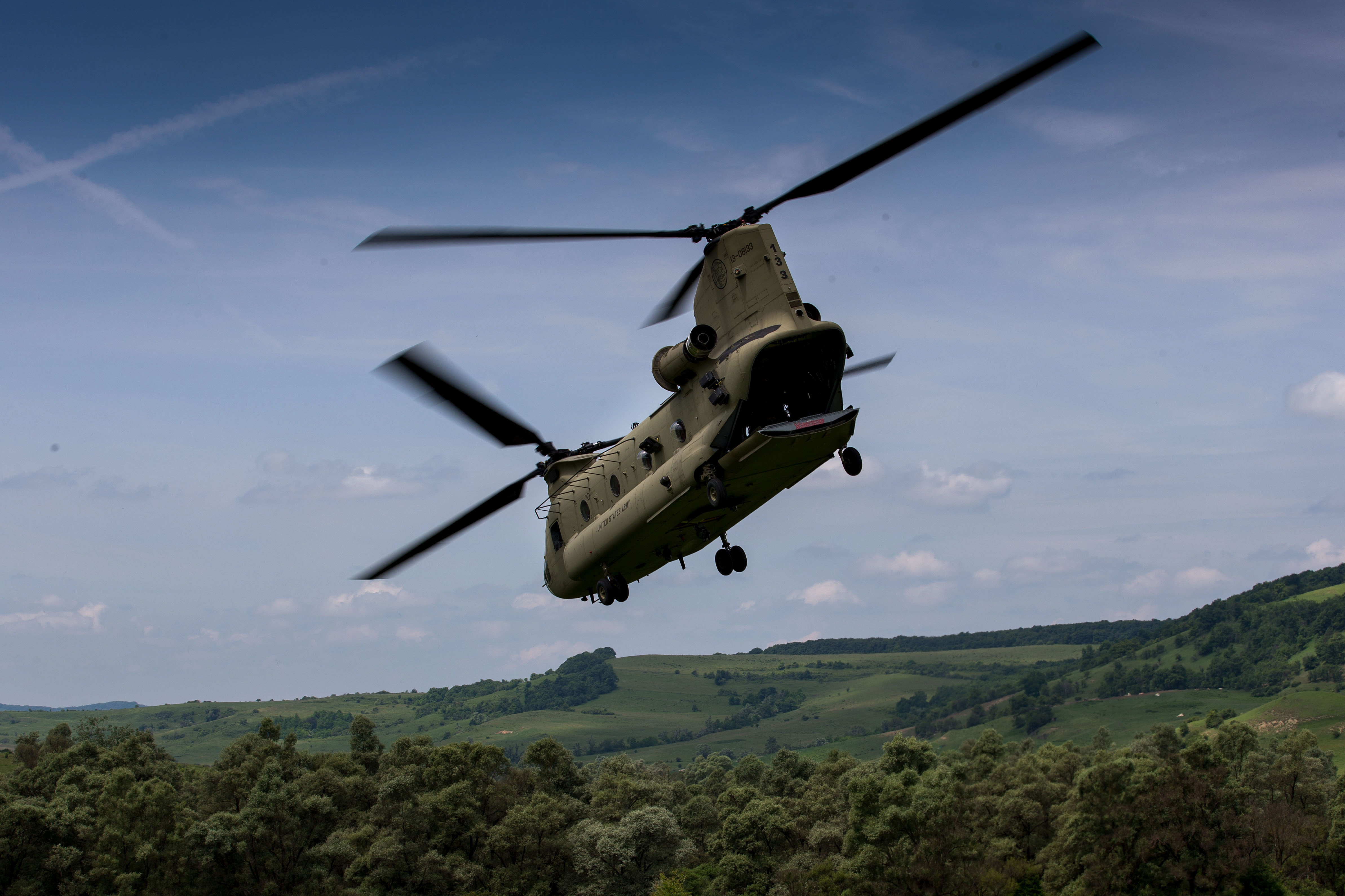 CH-47 Chinook este un elicopter de transport greu, bimotor cu două rotoare în tandem. Viteza sa maximă este de 315 km/h. Asigură transportul aeropurtat al trupelor, al pieselor de artilerie și reaprovizionarea. În spatele fuselajului se află o rampă de încărcare foarte lată, precum și trei cârlige pentru transportul cargoului extern. Elicopterele Chinook au fost achiziționate de către 16 țări, cei mai mari utilizatori fiind Forţele Terestre ale Statelor Unite ale Americii și Forțele Aeriene Regale ale Marii Britanii. Chinook sunt printre cele mai grele elicoptere de transport din Occident.