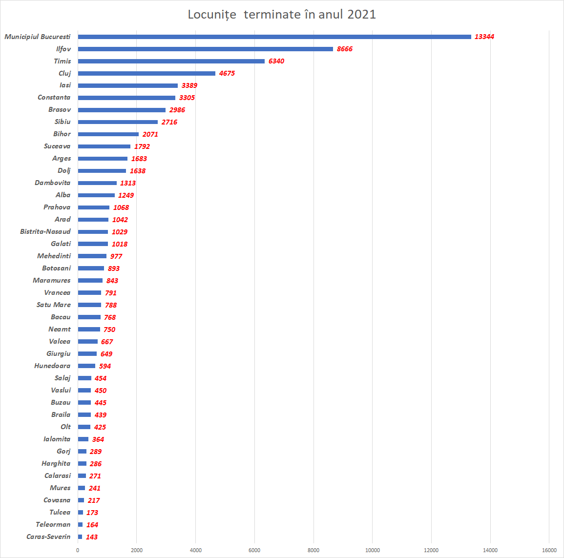 De asemenea, în 2021, numărul locuințelor terminate pe fiecare județ în parte arată ca mai jos: