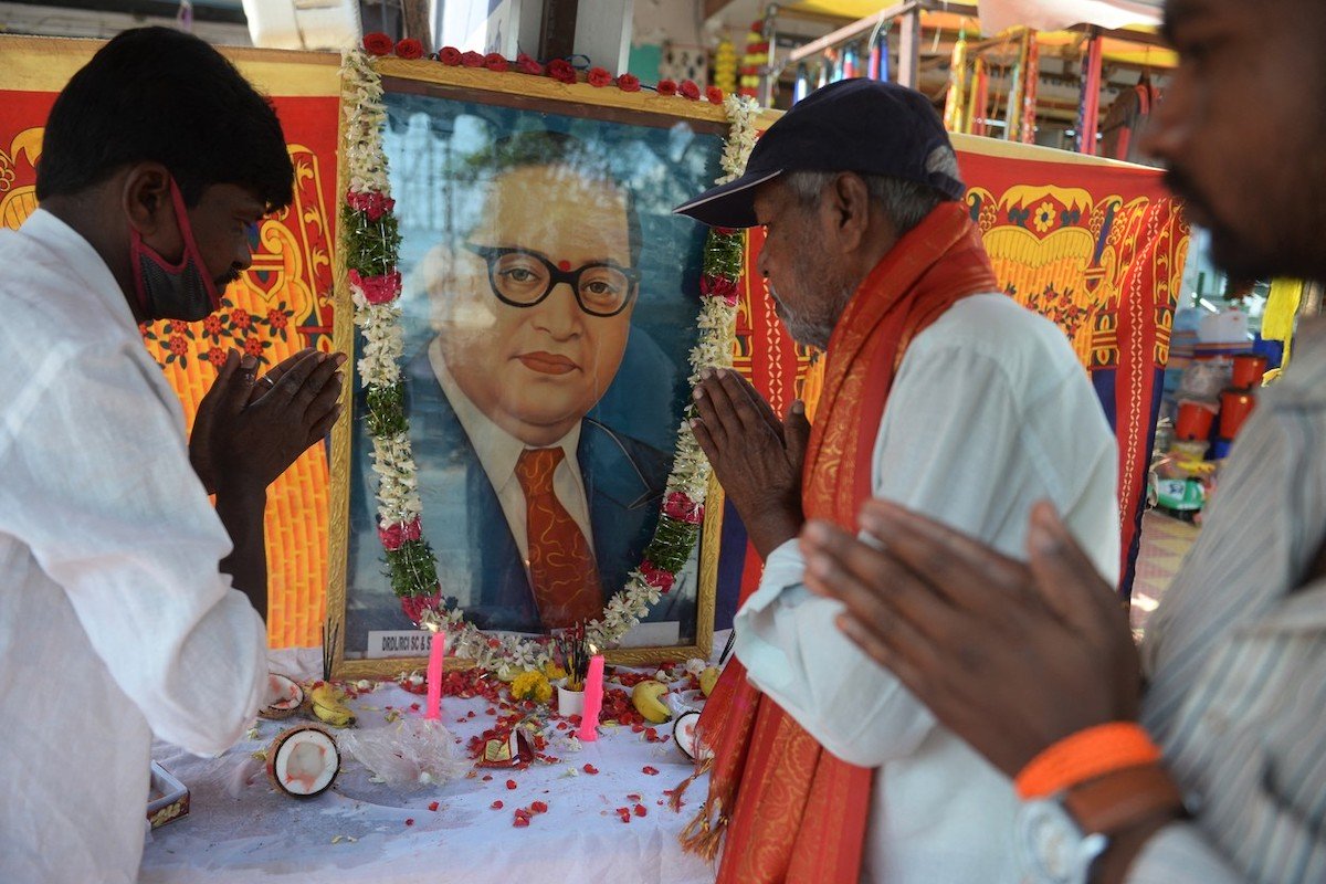 Portretul lui B.R. Ambedkar, arhitectul Constituției Indiei. FOTO: NOAH SEELAM / AFP / Profimedia