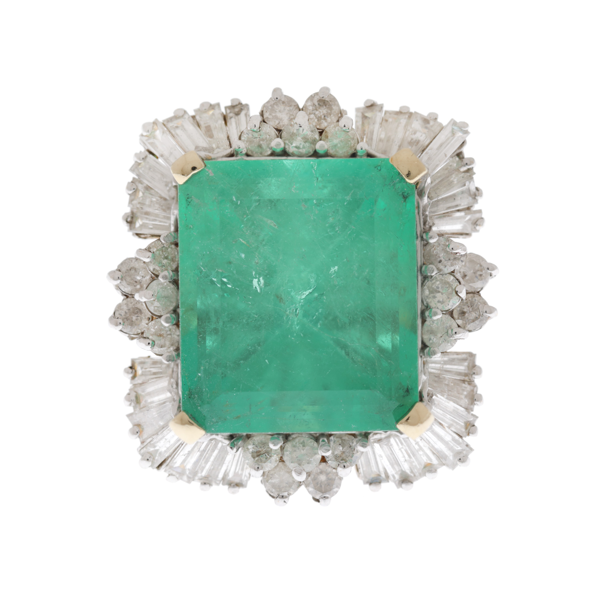 Smaraldele fac o spectaculoasă contopiere cu diamantele, în trei loturi de excepție, între care un set complet format din cercei, pandantiv și inel, estimat între 8.000 și 12.000 de euro. O altă comoară a licitației este un superb inel din aur, decorat central cu un mare smarald, anturat de 48 de diamante, ce pornește în licitație de la suma de 15.000 de euro.