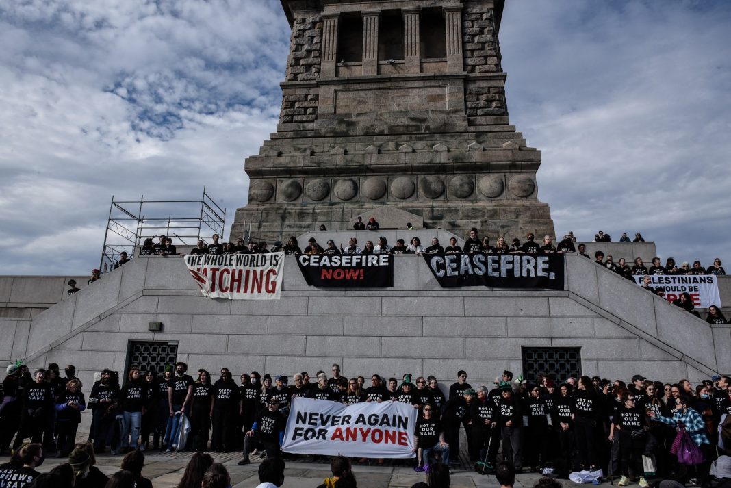 Sub sloganul „Palestina liberă!”, ea a spus că „acesta a fost doar începutul” demonstrațiilor, în timp ce New York și suburbiile sale sunt zguduite de trei luni și aproape în fiecare zi de acțiuni pro-palestiniene și pro-Israel, majoritatea pașnice.