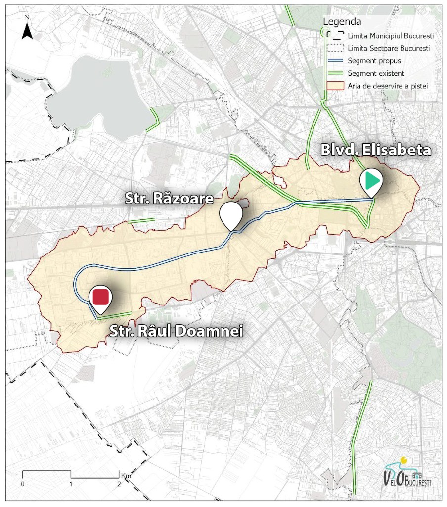 Traseul propus este alcătuit din următoarele străzi: Str. Apolodor, Piața Constituției, Bdul Libertății, Calea 13 Septembrie, Str. Uranus, Calea Rahovei și Șos. Alexandriei. Valoarea estimativă pentru realizarea pistei de biciclete: 3,45 milioane de euro.