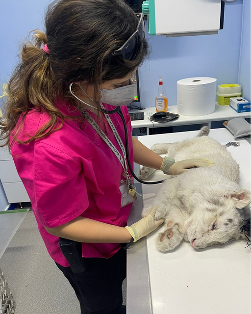 ”Când am văzut prima dată puiul, nu îmi venea să cred ce vedeam în faţa mea, sincer nu îmi venea să cred că un animal se află într-o asemenea stare. Probabil că a fost hrănită cu o dietă necorespunzătoare şi are un deficit sever de vitamine şi minerale, iar acest lucru îi face oasele extrem de fragile”, a spus medicul veterinar al grădinii zoologice, Noi Psaroudaki.