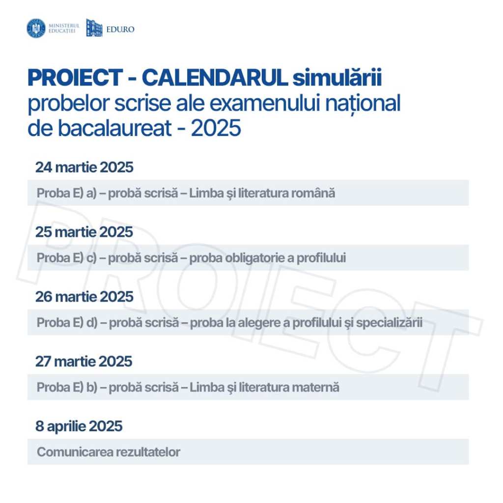 Potrivit propunerii, având în vedere structura anului școlar 2024-2025, probele urmează să aibă loc în luna martie.