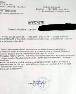 Din ce am mai scris noi despre nebunia administrativă din această comună ne amintim că în anul 2017, din cauza combinațiilor făcute la primăria comunei Ceahlău, această localitate a fost singura din România unde oamenii nu au mai primit subvenții pentru pășuni, iată că anul trecut s-a venit cu o treabă și mai ciudată. S-a propus în consiliul local trecerea pășunilor din domeniul public al comunei în domeniul privat, operațiune pe care o fac primăriile ce vor să ”scape” de anumite terenuri.