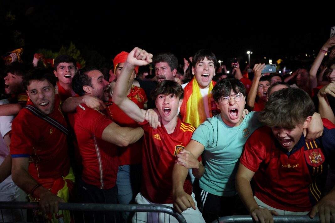 La fluierul final, o ovație uriașă a izbucnit în fața ecranului gigant instalat pe malul Manzanaresului, râul care străbate Madridul: miile de fani care au fost acolo pentru a urmări semifinala Euro dintre Spania și Franța au dat startul fiestei, potrivit AFP.