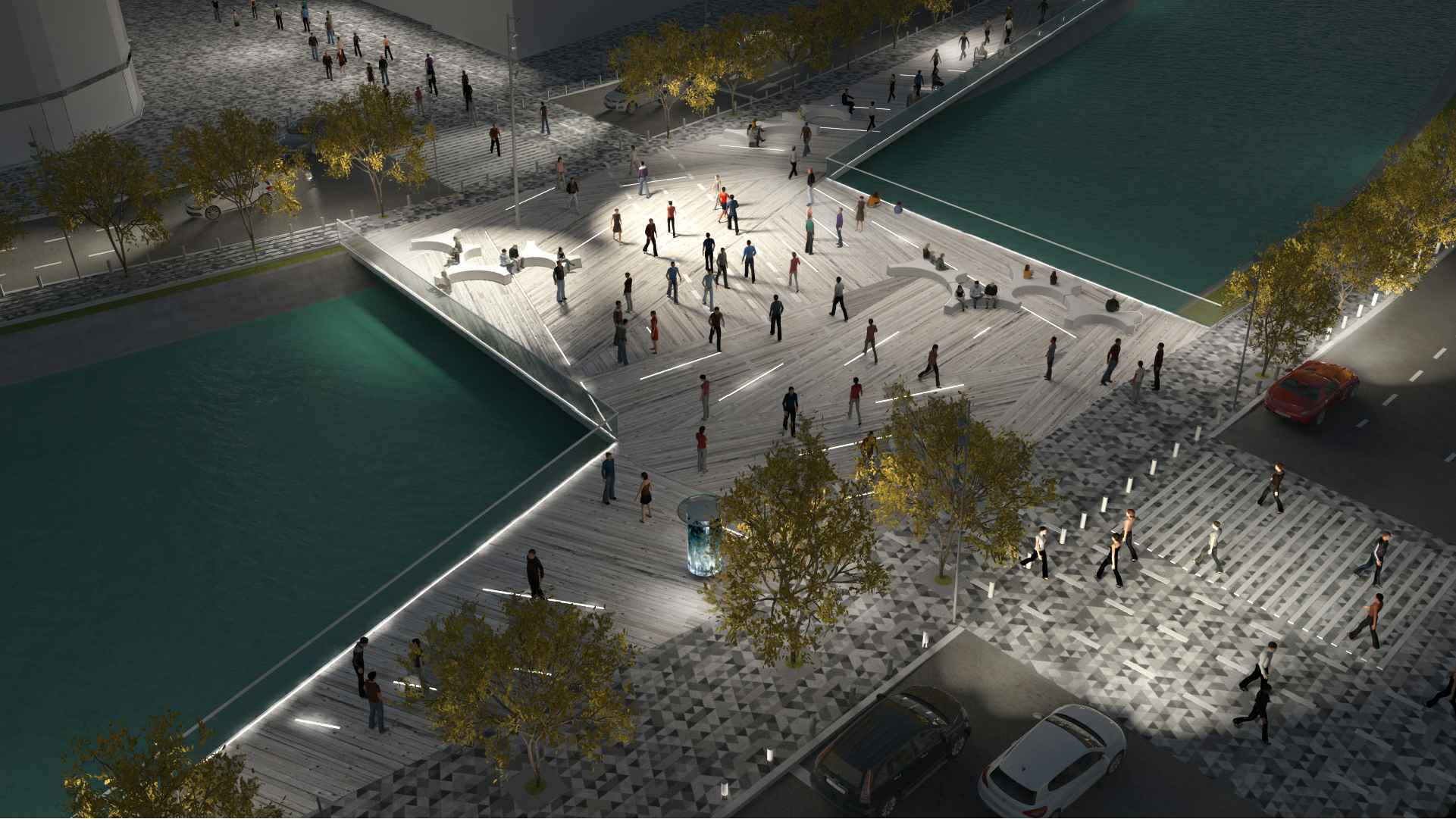 „Se propune realizarea unui pod pietonal si pentru biciclisti, care traverseaza Dambovita si Splaiul independentei in dreptul strazii Lipscani. Podul este conceput sub forma unei camere urbane incluzand functii publice: spatii de intalnire, platforme de observatie si odihna. La nivel cultural, podul este un simbol al memoriei colective a omunitatii, trasand in mod simbolic vechiul Pod Mihai Voda, distrus in anii 80. In legatura cu acest pod se vor amenaja si doua spatii urbane de tip piata. De asemenea se propune realizarea a doua parcaje subterane, unul in coltul de este al Parcului Izvor Hasdeu si unul pe Splaiul independentei, in zona scuarului Lipscani”, se arata in proiectul de hotarare.
