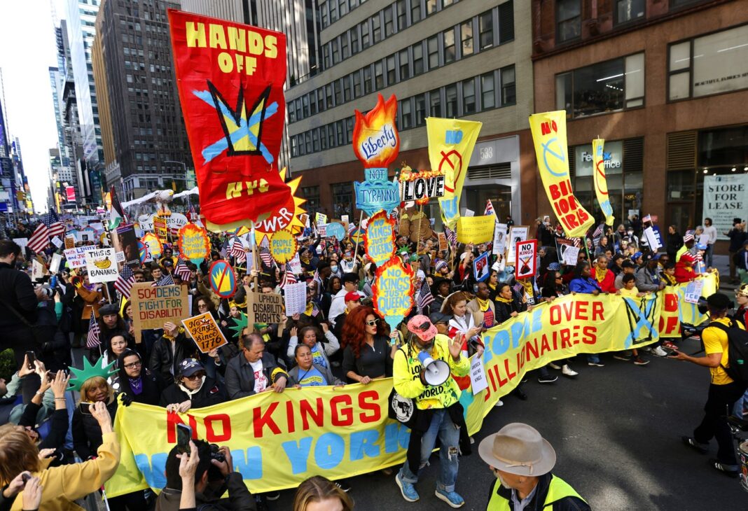Mulțimi de oameni au ieșit în stradă sâmbătă în marile orașe americane, iar adunări mai mici au avut loc și în alte zone din țară, în cadrul unui protest național împotriva administrației Trump, intitulat „No Kings” („Fără Regi”).