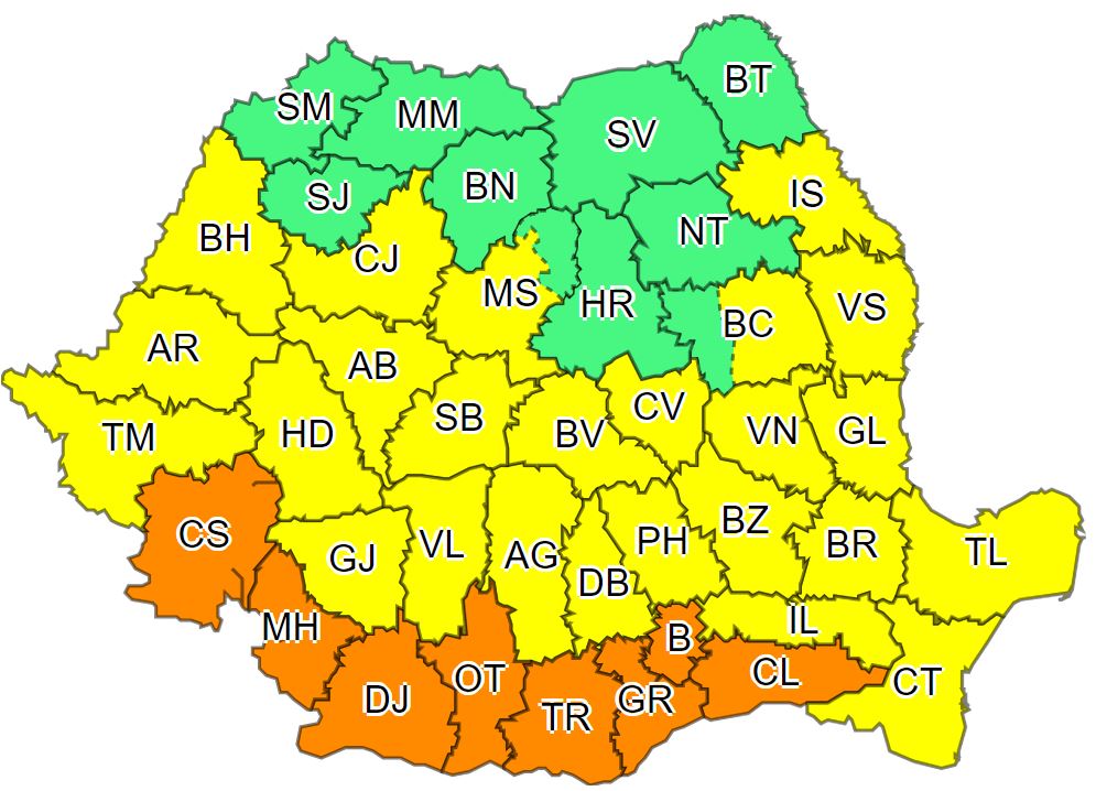 Cod galben de caniculă, sâmbătă: