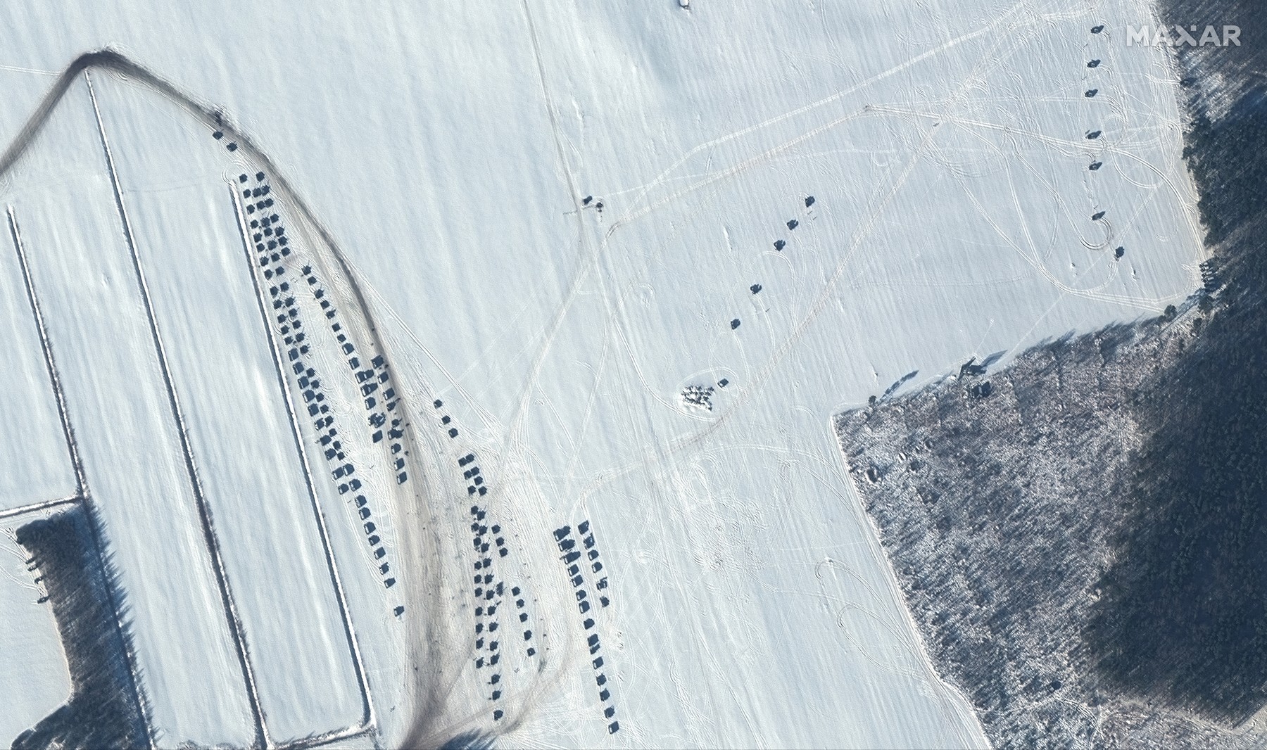 Maxar Technologies a declarat că a colectat imagini cu echipamente militare în apropiere de Yelsk, Rechitsa și Luninets pe 4 februarie. Toate locațiile se află la aproximativ 50 de kilometri de granița cu Ucraina.