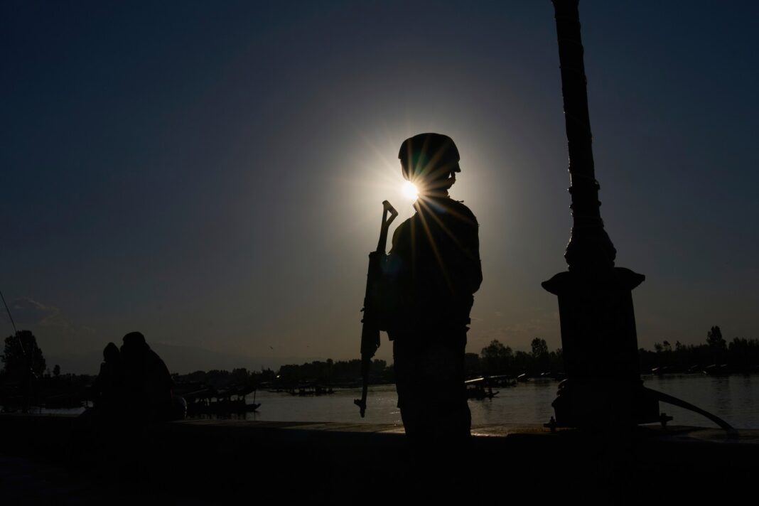 Soldat paramilitar pe malul lacului Dal din Srinagar, în Kashmirul aflat sub control indian, în 25 aprilie 2025. Credit: Dar Yasin / AP / Profimedia