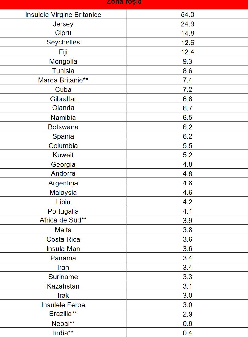 - însă – spre deosebire de lista galbenă – cei care vin din țări de pe lista roșie nu sunt scutiți de carantină dacă prezintă un test PCR negativ.