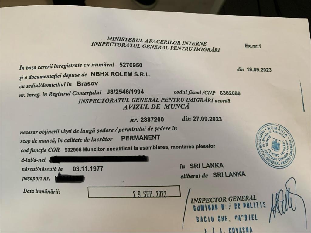 Bărbatul trebuie să ajungă acum la ambasada Sri Lankăi din București pentru a solicita emiterea unui nou pașaport din țara de origine. Conform legislației, din momentul în care muncitorii străini ajung în România, au la dispoziție 90 de zile – timp în care angajatorul trebuie să dovedească la IGI că le-a întocmit un nou contract. La fel și când își schimbă angajatorul. Deshan a plecat de la IGI cu promisiunea verbală că, odată intrat în posesia noului pașaport, va avea la dispoziție 90 de zile pentru a-și găsi un nou angajator și va continua să lucreze în România cu acte în regulă.