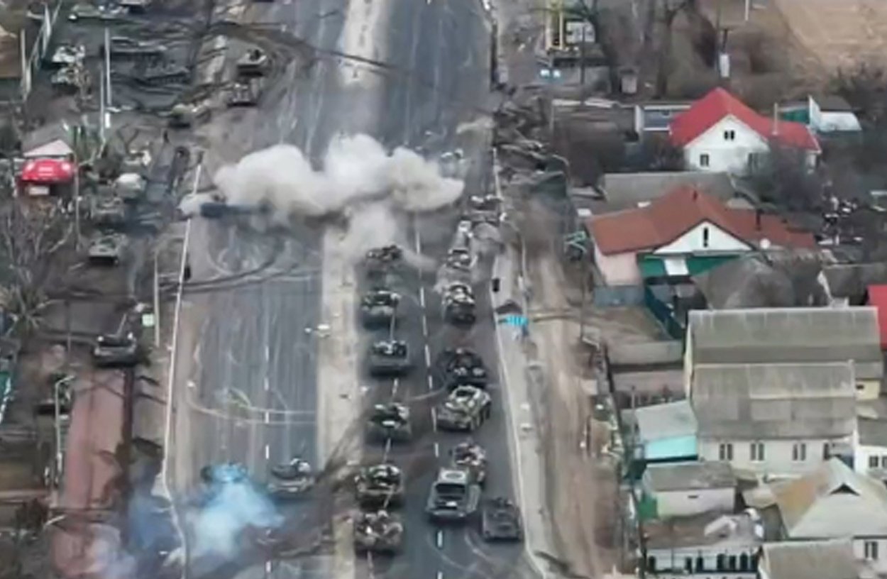 Tancuri rusesti distruse in apropierea KievuluiFoto: Captura Twitter