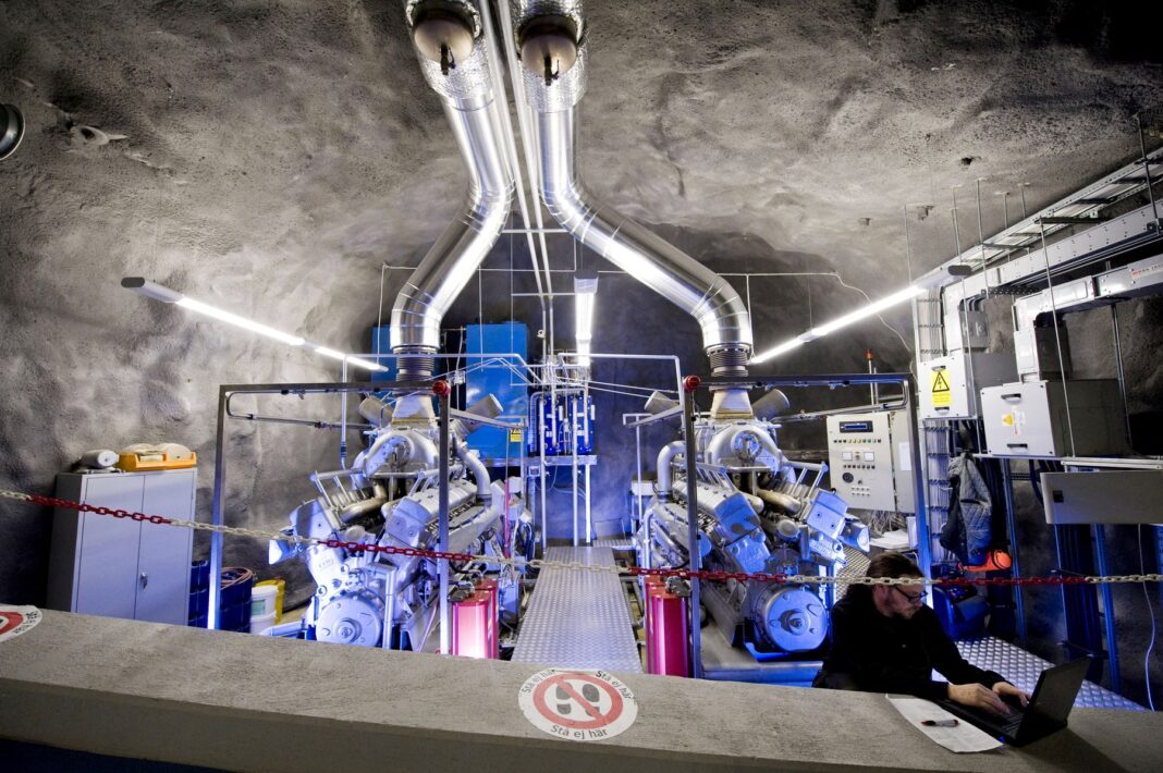 Centrul de date Pionen White Mountain, cândva un buncăr și un adăpost nuclear din perioada Războiului Rece, care găzduiește un centru de stocare de înaltă securitate. Stockholm, Suedia, 9 decembrie 2010.
