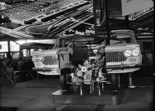 Organizatorii expoziţiei au oferit explicaţii la fiecare stand şi liderii români au avut posibilitatea să studieze de aproape un motocar Piaggio Ape C (prevăzut cu o cabină, două uşi, platformă de transport şi un motor de 150 cm3), un scuter Piaggio Vespa (probabil modelul 150 GL, dacă ne ghidăm după o imagine din jurnalul cinematografic realizat în iulie 1963 de Studioul Cinematografic „Alexandru Sahia”), un autocamion FIAT, un autobuz urban FIAT 410 Cansa şi mai multe automobile: un FIAT 500 D „Station wagon”, un FIAT 600 D (redenumit „Zastava 750” în Iugoslavia şi fabricat sub licenţă la uzina „Steagul Roşu” din Kragujevac), un FIAT 1100 D, două FIAT-uri 1500 (unul fiind prezentat sub formă de machetă mobilă secţionată în două, care le permitea vizitatorilor să vadă interiorul automobilului şi, separat, motorul montat pe şasiu) şi un FIAT 1800.