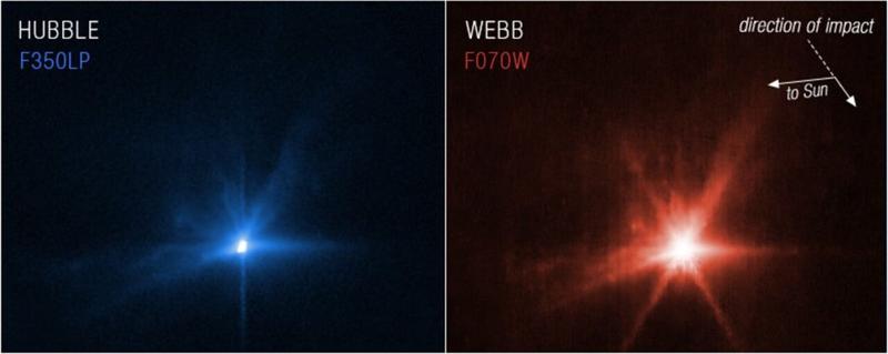 Impactul dintre DART si Dimorphos, vazut de Webb si Hubble Foto: Agentia Spatiala Europeana