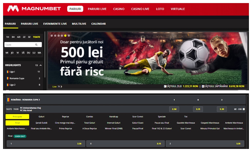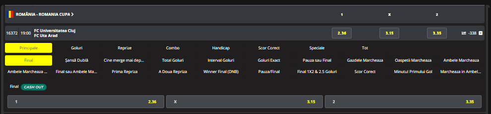 Alte cote interesante oferite pentru meciul U Cluj – UTA Arad de Magnumbet: