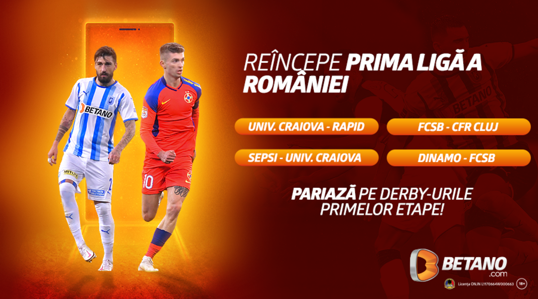 Susține-ți echipa favorită pe Betano cu cele mai bune Cote, BetCombo (pre-meci și LIVE), ofertă completă de pariere și retrageri în maximum 3 ore!