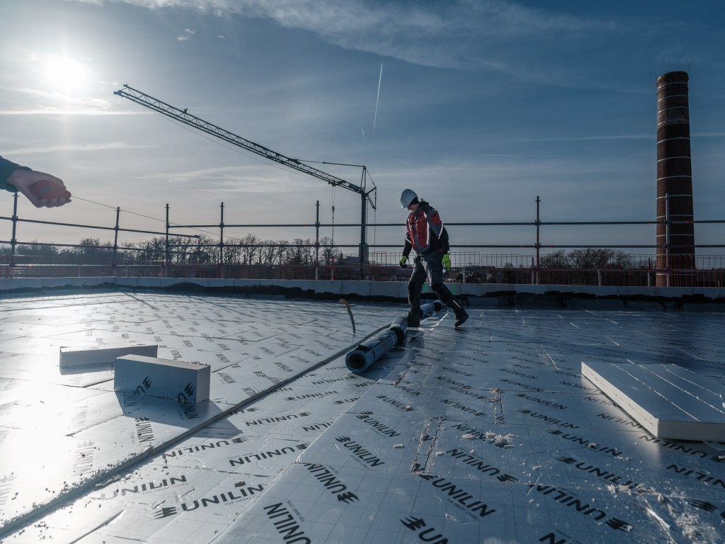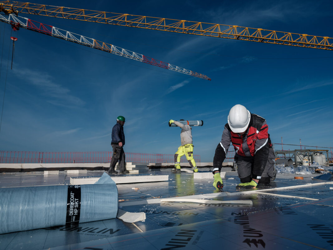 Autorulota noastră e parcată lângă dubele muncitorilor și în fiecare dimineață îi auzim când încep să sosească la 5.50, când încarcă sculele, plăcile de izolație și sulurile de membrană bituminoasă – întâi pe zăpadă și întuneric, apoi pe ploaie, vânt și umezeală, apoi zilele se lungesc și răsăritul ne prinde în ușa depozitului, în spatele magazinului Brico, în cartierul industrial traversat de camioane și dube de lucru.