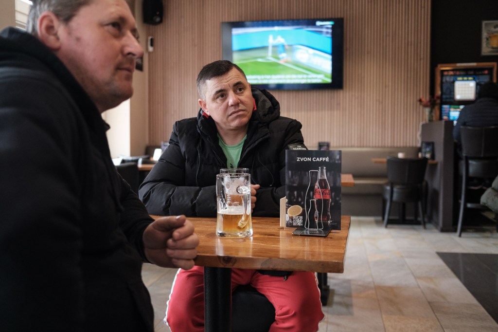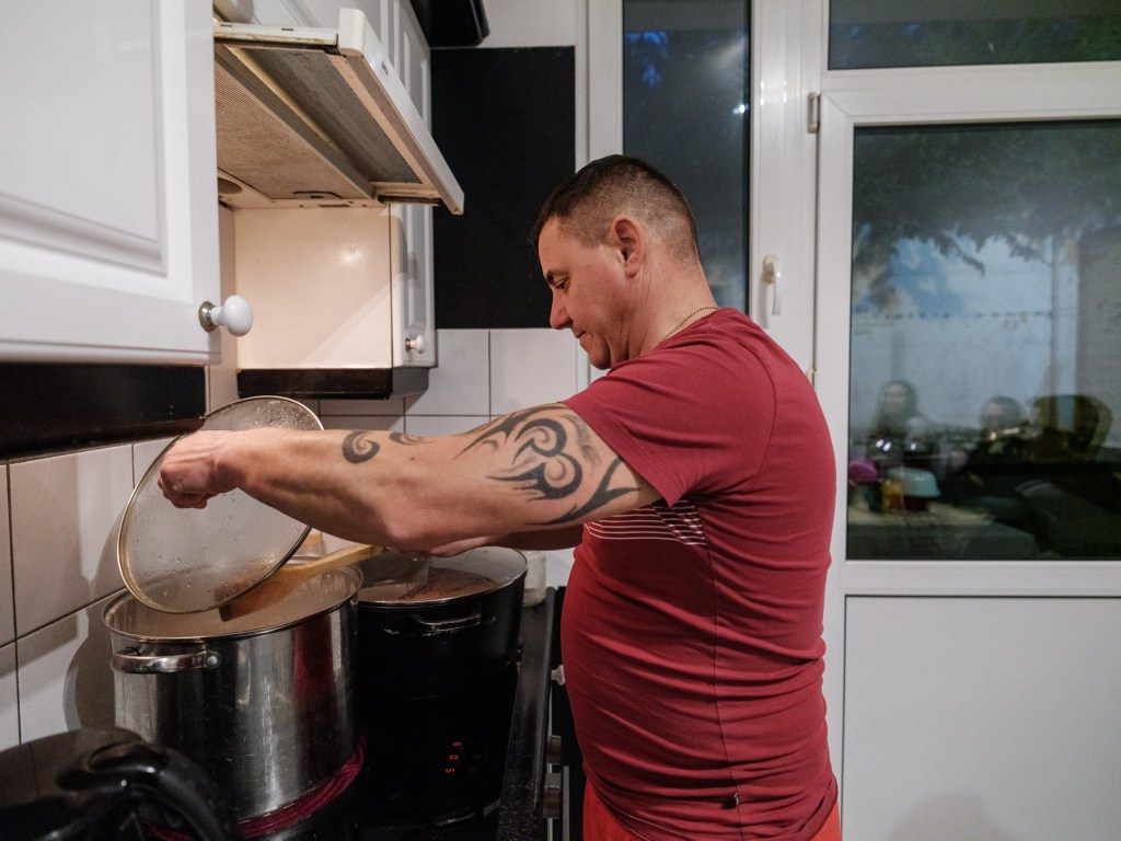 Costică plânge pe canapeaua din living, în timp ce din bucătărie se aud clinchete de pahare, muzică și râsetele colegilor lui. „Vreau să mă trag lângă familie. Mi-e foarte greu fără familie. Nu mai pot să rezist”.