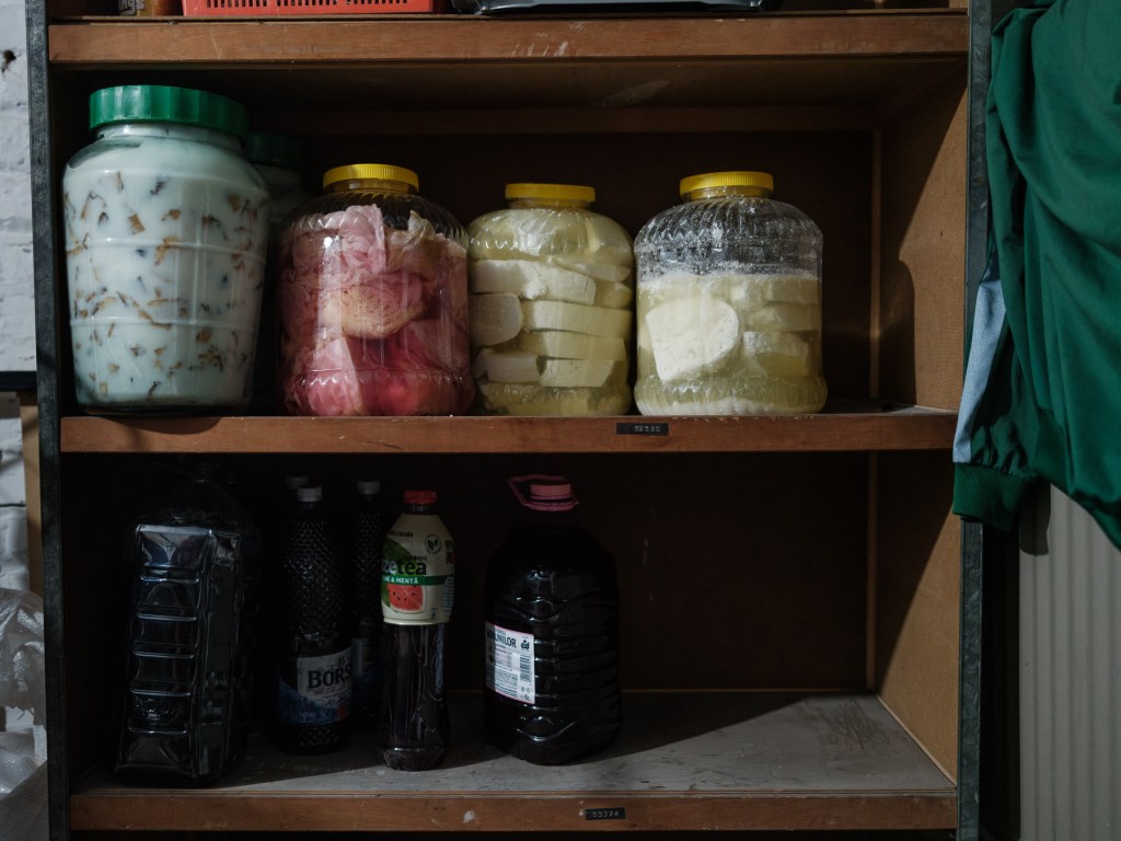 Costică ne invită la masă și ne servește cu brânza de oaie de la Vaslui pe care am lăudat-o data trecută. Ține în beci proviziile din România: borcane cu brânză în saramură, murături și carne de porc în untură. Cosmin întreabă dacă n-are și niște slănină, dar toți bărbații din casă au proviziile lor, așa că pe masa din bucătăria comună se face o degustare de slănină din diverse sate din Moldova.