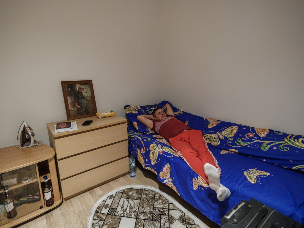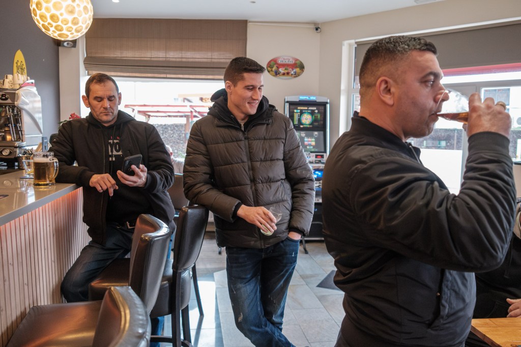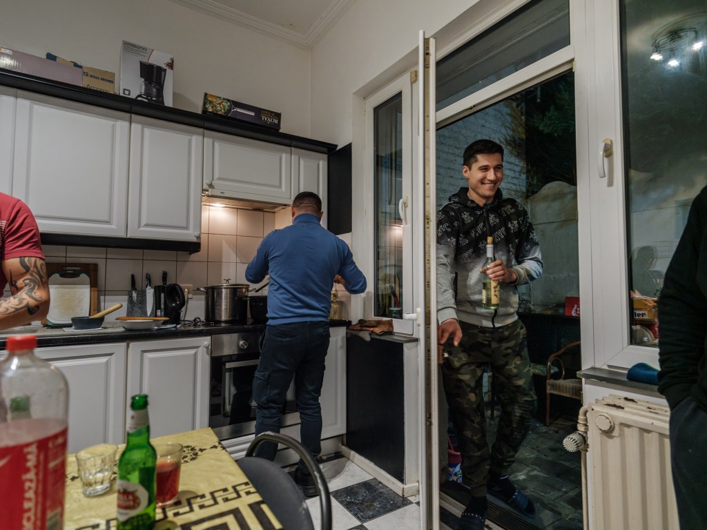 E una din puținele zile însorite din luna martie și muncitorii români fumează în curte. Îi vizităm duminica la cazări, în ziua lor liberă, când au timp să se lungească la vorbă. Marian a pus la boxe muzică din anii ‘80, iar Costică e în bucătărie și gătește rasol de porc. Ghiță s-a întors de la târgul de vechituri cu o colivie mai mare pentru cei doi papagali pe care Marius i-a cumpărat ieri cu 50 de euro de la un român.