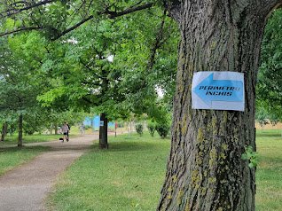 - Zona închisă include un loc de joacă, un teren de sport, un spațiu pentru câini și partea de tip pădure din parc.