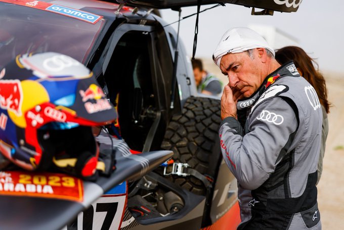 @CSainz_oficial, who lost control of his @audisport after 6 km, has thrown in the towel, still suffering from pain in the right side of his torso. He has been airlifted to the hospital in Riyadh to undergo further medical check-ups. #Dakar2023 pic.twitter.com/bEqwF9heks