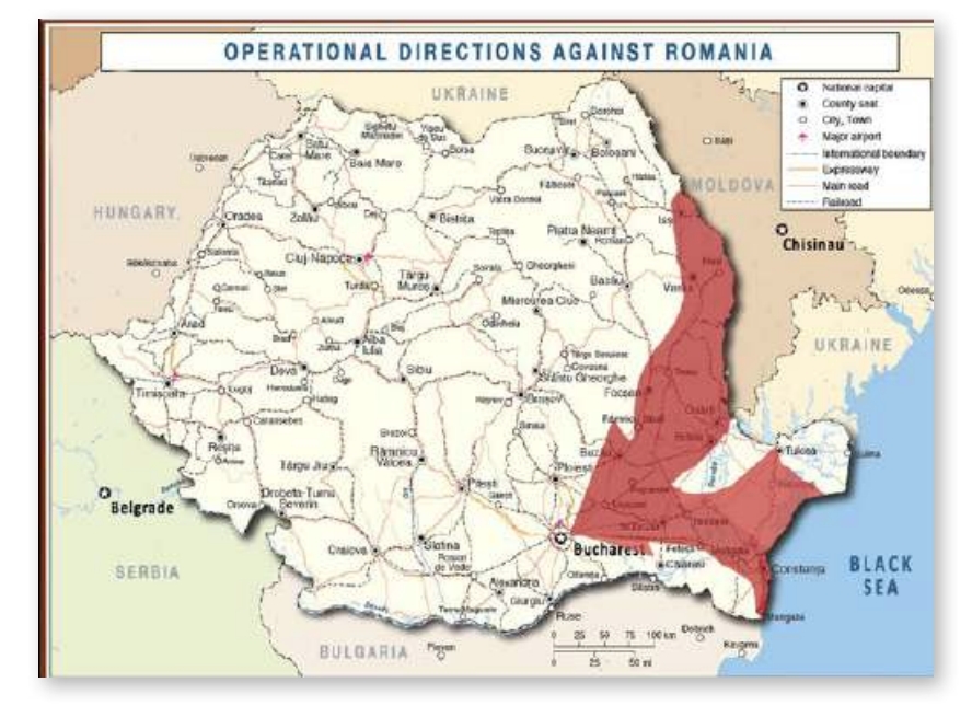 Scenariul însă subliniază o strategie îngrijorătoare pentru o parte a populației: Abandonarea a mare parte din Moldova și retragerea trupelor pentru a monta o apărare pe linia Porții Focșanilor, pentru a opri un avans spre Capitală.