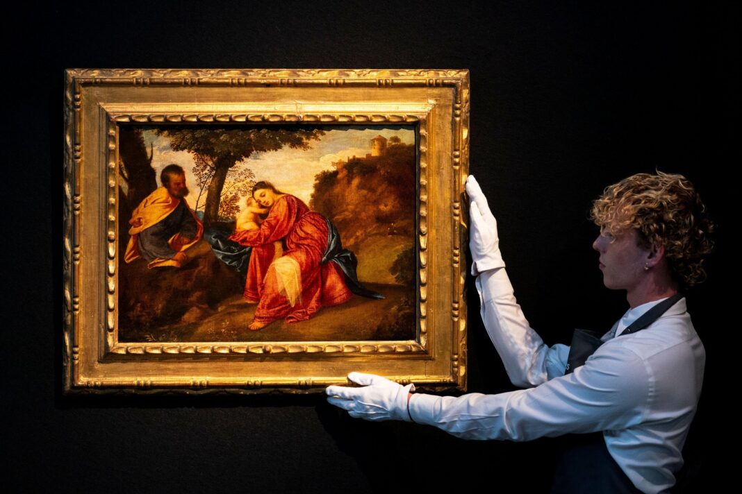 Tabloul intitulat „Riposo durante la fuga in Egitto” („Odihnă în timpul fugii în Egipt”), pictat în 1510, când maestrul veneţian avea vârsta de 20 de ani, s-a vândut la sediul din Londra al casei de licitaţii Christie’s.