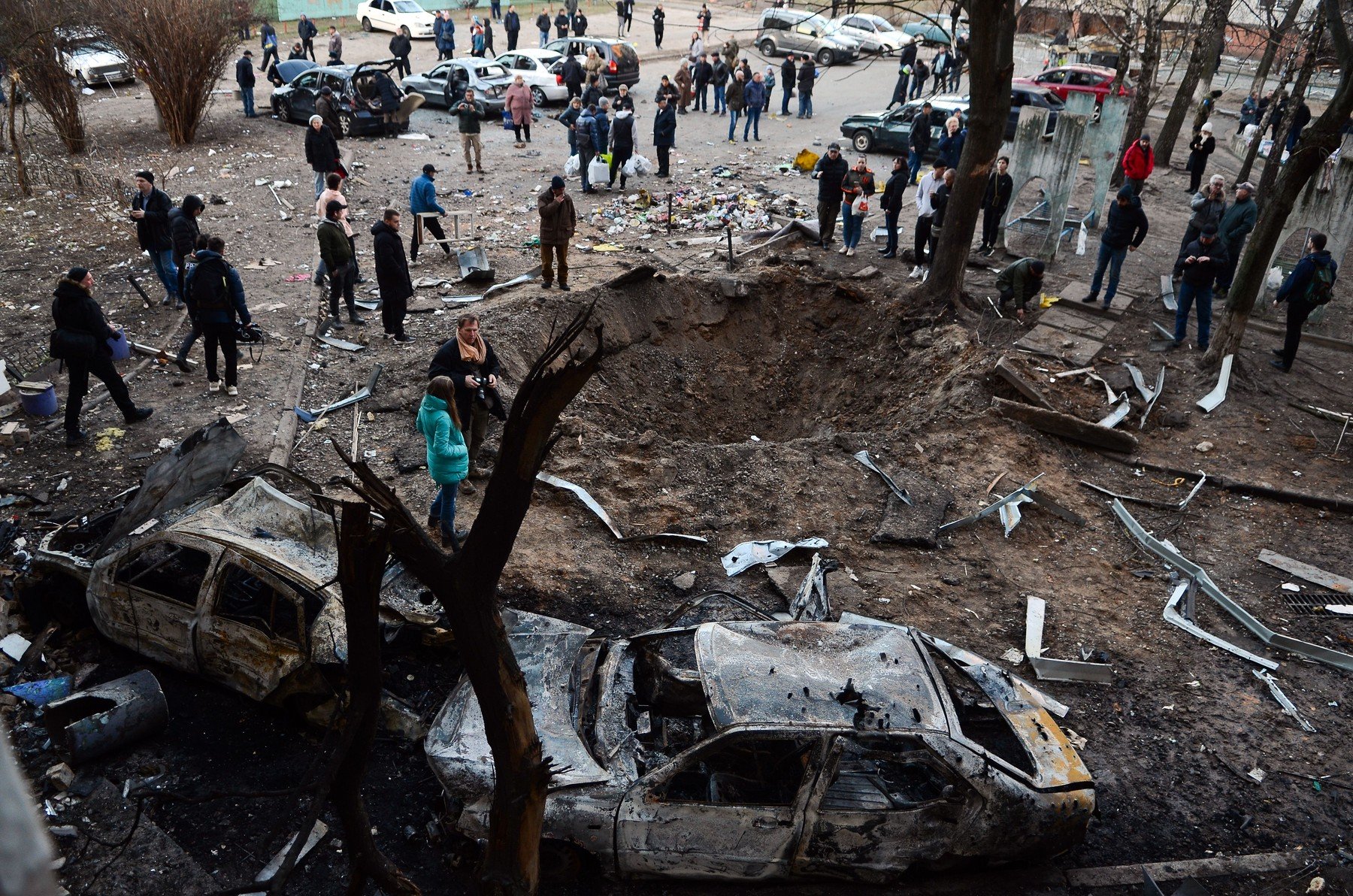 „Nu este o glumă bună dar este absolut ca la ruleta rusească”, spune Viaceslav Ostapenko, în vârstă de 55 de ani. Acesta, un angajat al televiziunii 5 Kanal și partenera sa, Irina Popova, o autoare de cărți pentru copii, sunt printre numeroșii ucraineni din clasa de mijloc care au ales să rămână în Kiev.