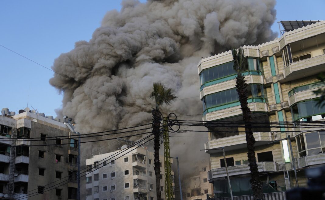 Fum după un raid aerian israelian în Dahiyeh, suburbie a Beirutului. Foto: Hussein Malla / AP / Profimedia
