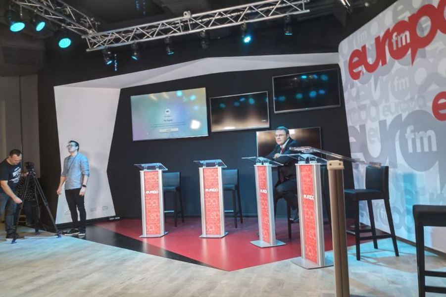 Realizatorul a publicat, în cursul după-amiezii de joi, o imagine cu un „studio TV” organizat cu această ocazie de postul de radio, în platou apărând, după cum spune el, șase pupitre – unul pentru fiecare invitat (in fotografie sunt vizibile doar cinci). Dezbaterea va fi „în direct la Europa FM și pe Europafm.ro”, potrivit anunțului făcut de post. Acesta acordă oricărui post de radio-TV sau site interesat permisiunea de a prelua transmisia.