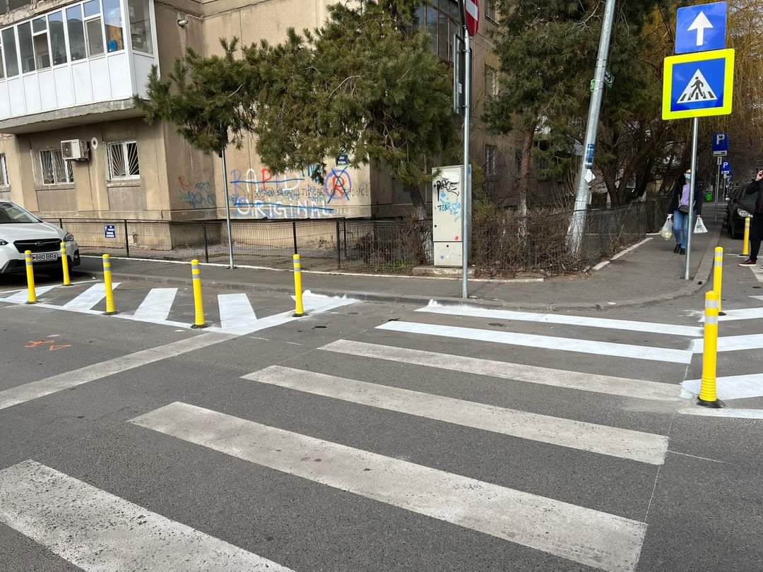 Primăria Sectorului 6 pune stălpișori în zona trecerilor de pietoni ca mașinile să nu mai poată parca și să nu afecteze vizibilitatea. Reprezentanții Primăriei spun că aceasta este o soluție temporară.