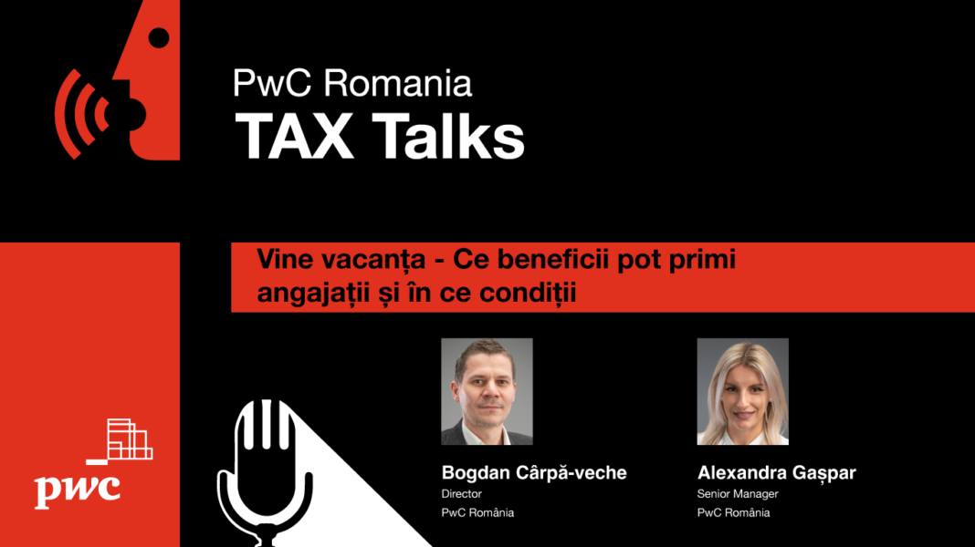Angajatorii au trei opțiuni pentru a acorda angajaților beneficii pentru vacanță, respectiv vouchere de vacanță, contravaloarea cheltuielilor cu serviciile turistice și/sau de tratament, inclusiv transportul pe perioada concediului, și, nu în ultimul rând, primele de vacanță, fiecare cu un regim fiscal complet diferit, fiind parțial sau total scutite de taxe. Despre aceste beneficii, avantajele lor și aspectele la care trebuie sa fie atenți angajatorii au discutat Bogdan Cârpă-veche, Director People Organisation PwC România, și Alexandra Gaspar, Senior Manager și Lider pentru servicii de Payroll și HR în PwC România.