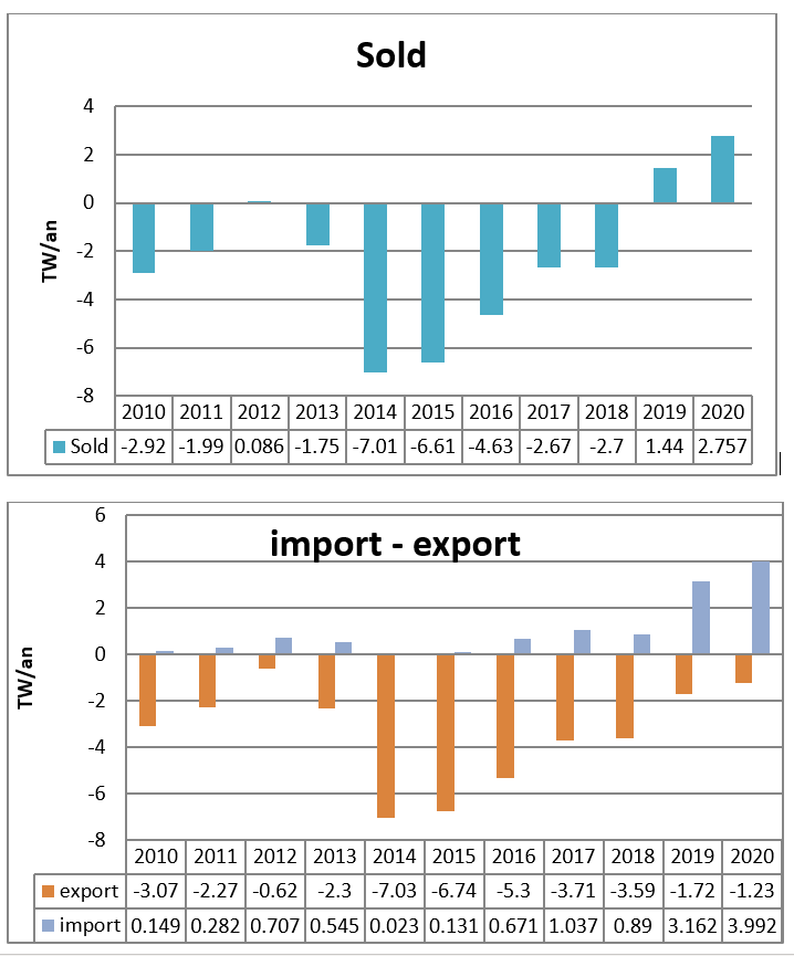 2012 a fost un an secetos și aceasta este explicația celor 85.47 GW imporați în acel an. Începând cu 2014 Hidroelectrica a produs excesiv: în 2014 peste 18 TW.