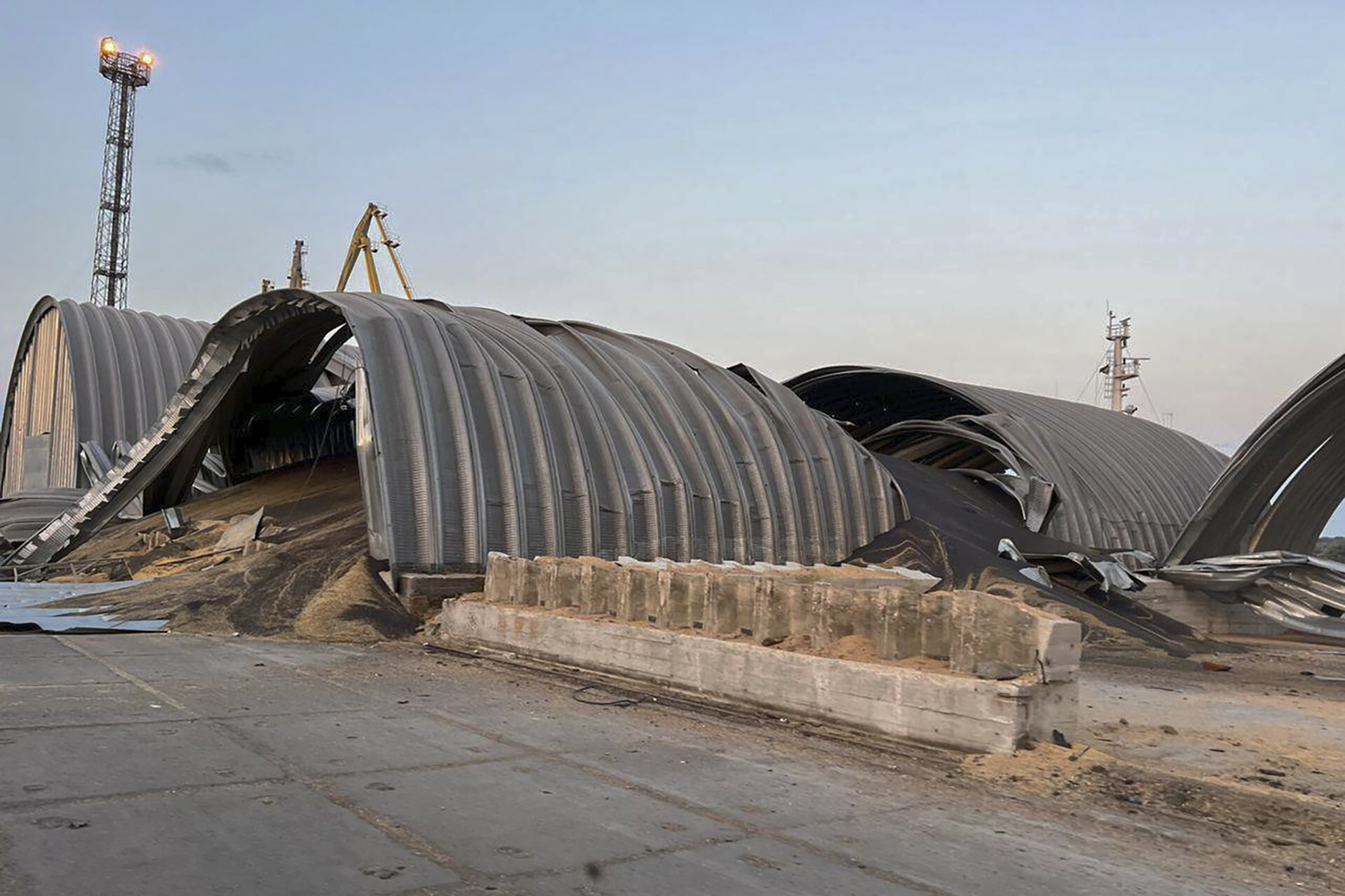Depozit de cereale ucrainean lovit de drone ruseștiFoto: Odesa Regional Administration Press Office / AP / Profimedia