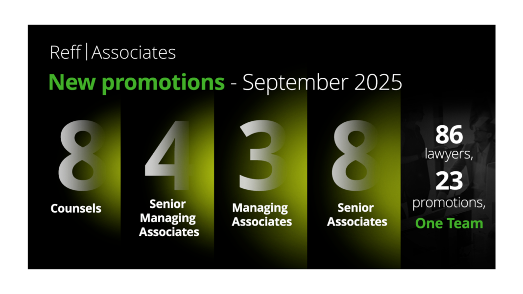 Reff & Asociații | Deloitte Legal își consolidează echipa prin promovarea a 23 de avocați, începând din luna septembrie 2025. Este vorba despre Silvia Axinescu, Ovidiu Bălăceanu, Patricia Enache, Ana Galgoțiu-Săraru, Simona Iacob, Gabriela Ilie, Bogdan Mărculeț și Larisa Popoviciu, care au preluat rolul de Counsels, de Roxana Bratosin, Maria Nițulescu, Fraga Varadi și Andreea Zaharia, care au devenit Senior Managing Associates, de Dănuț Arion, Anca Belciu și Miruna Stanciu, care au fost promovați pe poziția de Managing Associates, precum și de Andrei Bănescu, Călina Bichescu, Alexandra Mihailov, Andreea Nae-Caragea, Andreea Pantofaru, Sorin Sîrbu, Alexandru Tinică și Sebastian Toader, care au urcat pe poziția de Senior Associates.