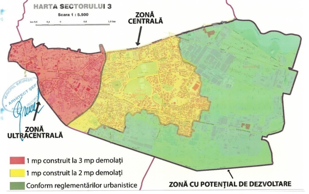 Regulamentul de urbanism propus de primarul Robert Negoiță prevede că în zona centrală a Sectorului 3 se va putea construi 1 mp dacă se demolează 3 mp, iar pentru zona de mijloc din sector propunerea este să se demoleze 2 mp pentru a construi 1 mp. La periferie este la liber, neexistând nicio interdicție.