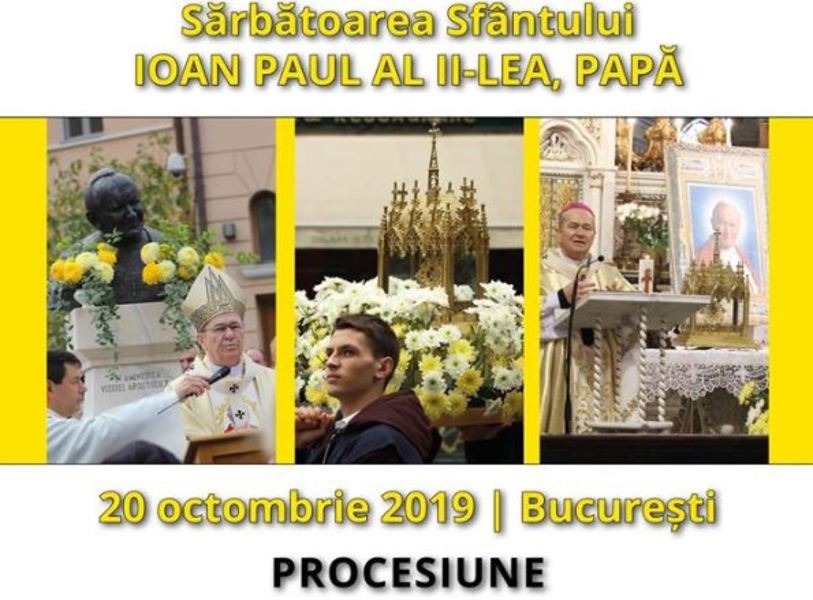 Patru episcopi, zeci de preoţi însoţiţi de credincioşi şi persoane consacrate vor purta în procesiune, duminică, relicva Sfântului Papă Ioan Paul al II-lea pe străzile Capitalei, transmite Agerpres.