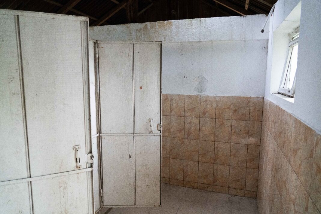Toaleta școlii din Valea Mare are gresie și faianță, apă curentă și toalete turcești. Când intri, te lovește un miros înțepător.