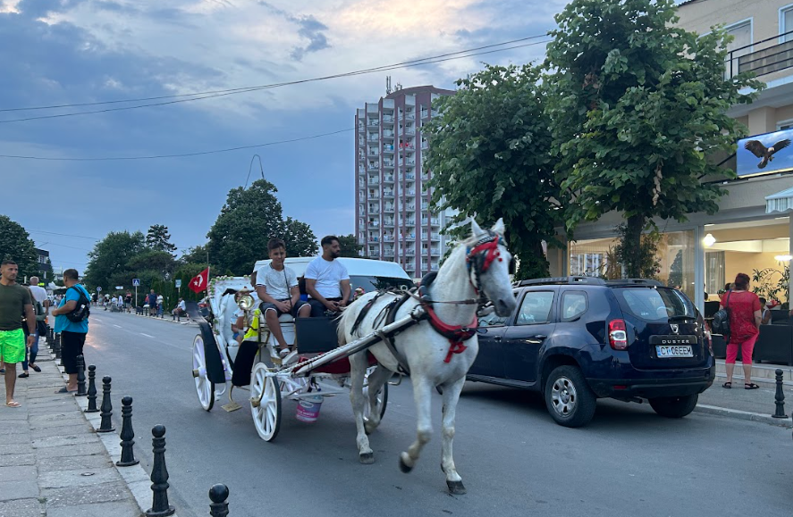 Acest model însă este unul care atrage și o mulțime de turiști români, lucru confirmat și de sutele de mașini parcate prin stațiune, cu numere de România.