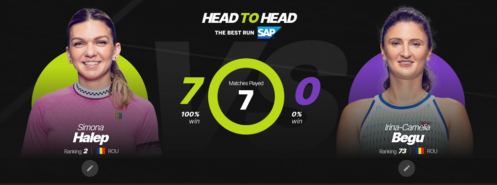 Site-ul oficial al WTA reține șapte meciuri directe între Halep și Begu. De fiecare dată câștig de cauză a avut Simona.