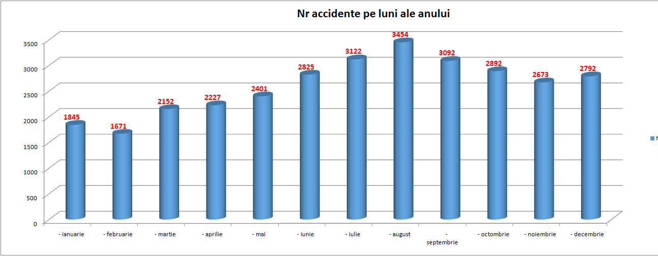 Iulie și august sunt lunile în care au loc cele mai multe accidente cauzatoare de vătămări corporale. În februarie, cele mai puține.